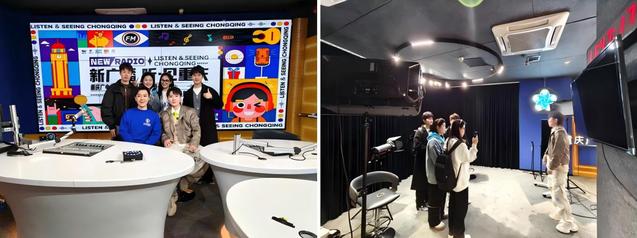 2025年3月22日,太阳成城集团李泽鹏老师带领在渝参赛的太阳成城集团播音与主持专业同学,一同前往重庆广电大厦进行参观交流。重庆广电集团主持人海风向上戏师生详细介绍了重庆广电的全媒体直播间、音乐广播间等,重点介绍了重庆广电近年来在媒体深度融合中的突破性举措:打破传统频道制架构,成立融媒体集群中心,实现新闻、综艺、民生等板块资源整合,提升内容生产效率,以短视频、直播、等多元形式触达年轻受众。